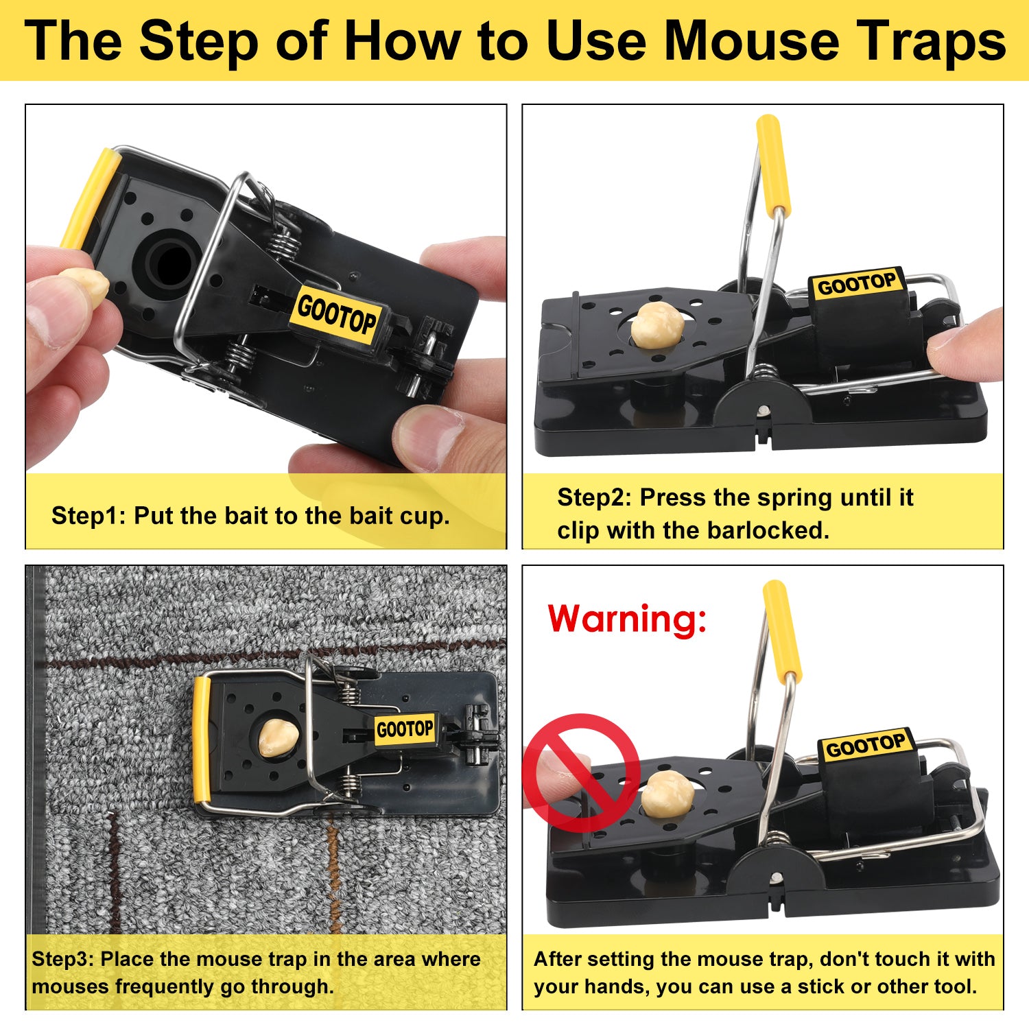 - Easy to Set and Use, You just need to put the bait in the bait cup, and keep the rat traps open, then put the mouse trap in the place where the mouse often appears.